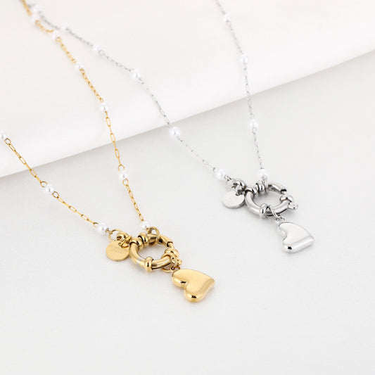 Bedelketting Heart & Pearl Zilver