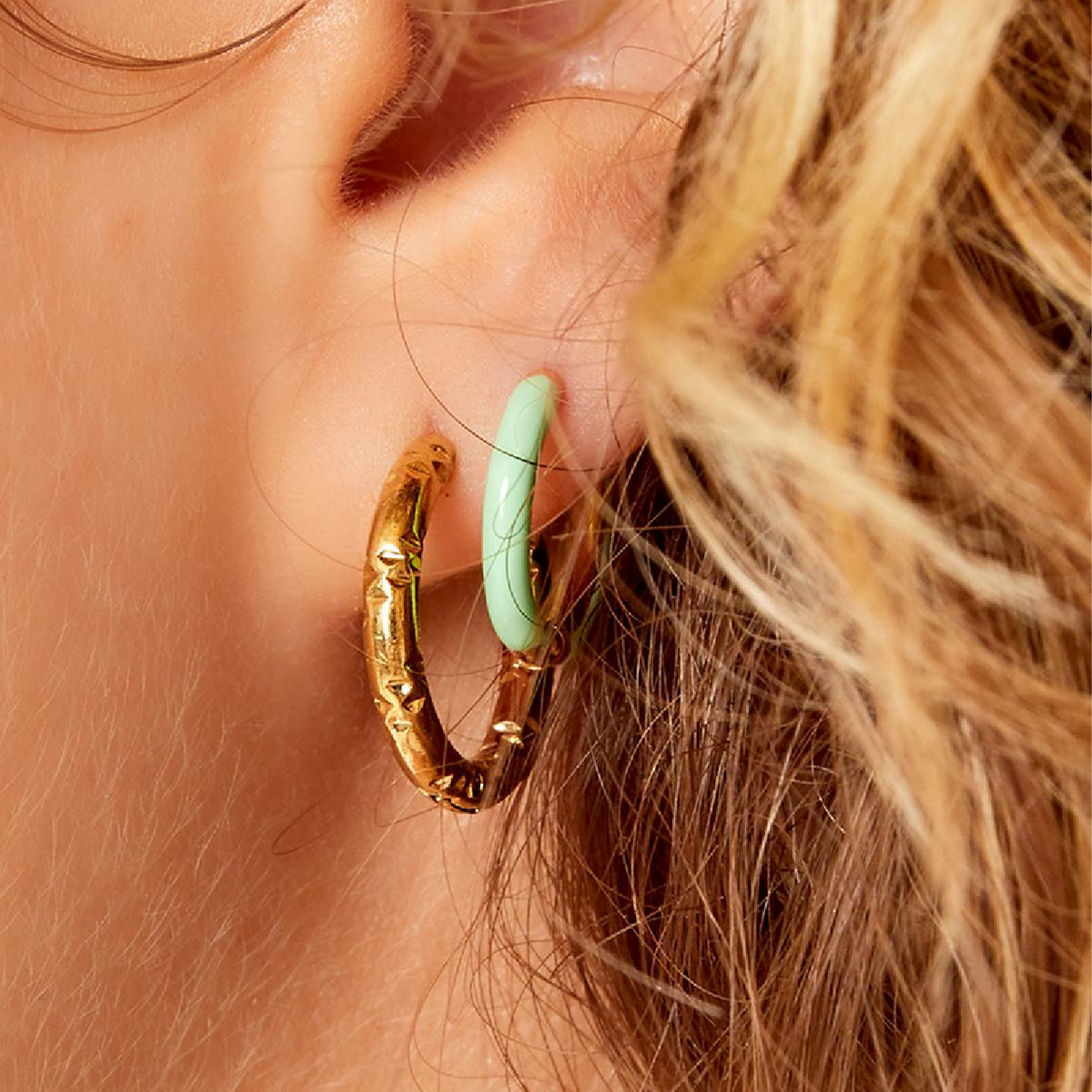 De Brushed Glow Oorbellen stralen subtiele luxe uit met hun verfijnde geborstelde gouden afwerking. Tijdloos, elegant en perfect voor elke gelegenheid.