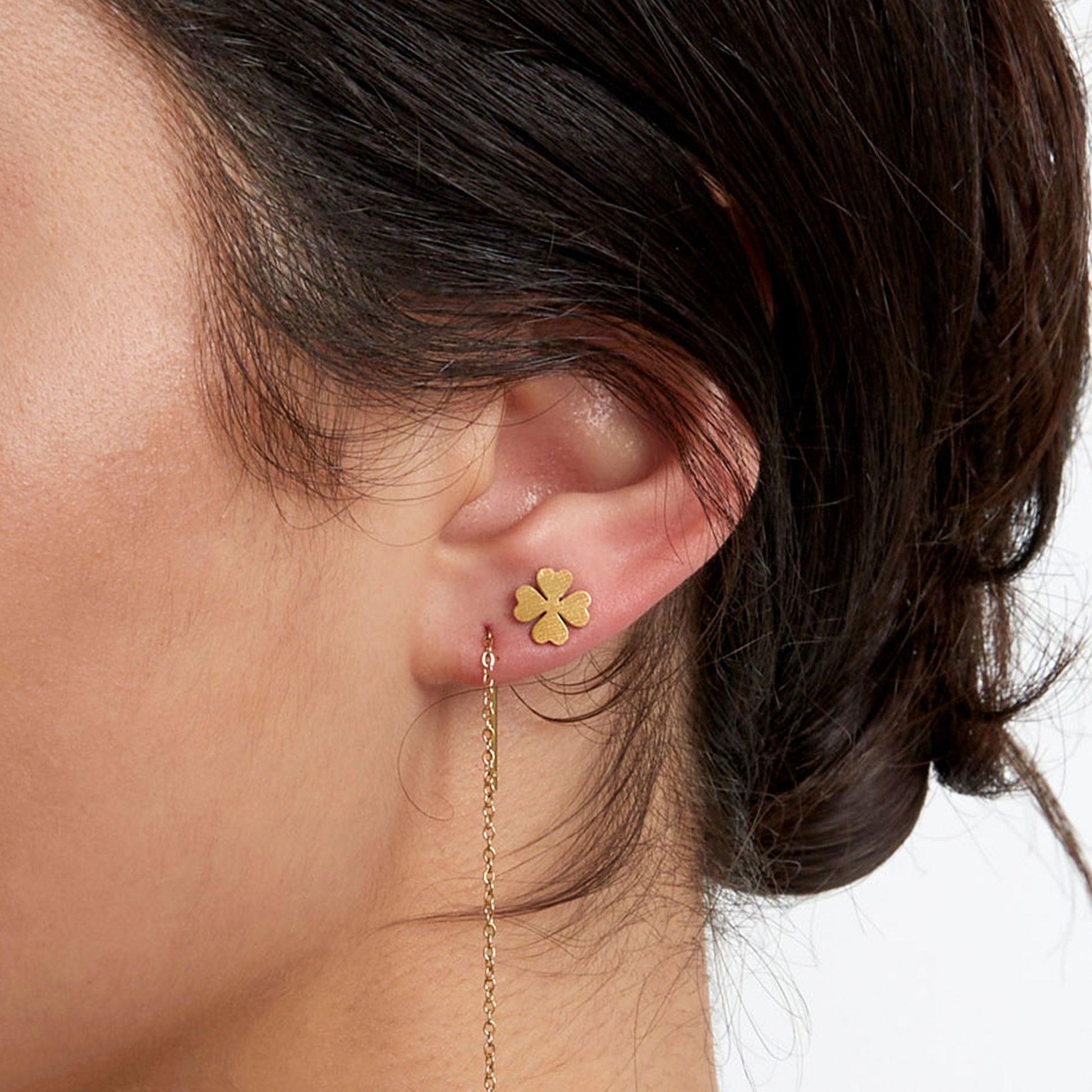 Schattige oorstekers in de vorm van een klaverblad, symbool voor geluk. Gemaakt van hoogwaardig roestvrij staal (RVS), waardoor ze duurzaam, kleurvast en hypoallergeen zijn. Een speelse en stijlvolle toevoeging aan je dagelijkse look.